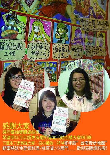 1/10當日消費即可抽紅包~風呂敷、檜木杯墊、明信片、現金折抵……………好康多多喔!!!