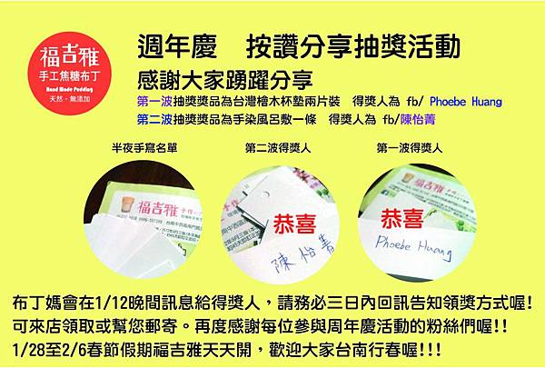 4. 元月家庭日為1/5(日)~1/6(一)店休喔,宅配請多利用FB粉絲團或伊媚兒下訂,傳真專線: (06)2137412,訂購專線: (06)2135818. 0986-557399