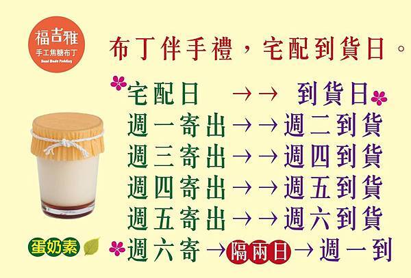 🎁週一寄➡️週二到🎁週三寄➡️週四到🎁週四寄➡️週五到🎁週五寄➡️週六到🎁→→週六寄➡️週一到(因週日無收送,所以週六寄是隔兩日到喔,其他都是隔日到)