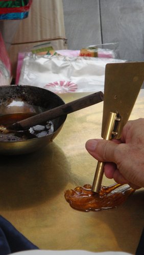 孔廟對面時常可見畫糖達人---現場製作令人感動的工藝...他的手腳雖然不便.手藝卻很精巧.我們每次看它的作品都有不同的表現...今天有鍬形蟲..上次是挖土機...剛才還有客人指定要一隻公雞和貴賓狗。