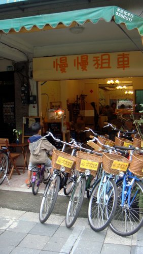 這家租車店~老闆娘就叫曼曼.有隻店貓-蘿蔔糕,曾是台北社區大學單車旅行強棒講師---因緣際會認識了現在這個房東,而來到台南開店,她有幾個堅持: