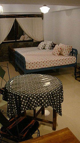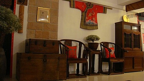 桌椅門框都很復古....不..是真的古樸...床也是各個不同的收藏品...喜歡可以買回家---如果黃大高願意割愛的話。