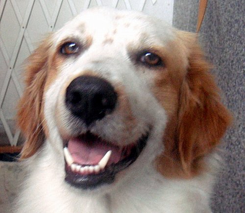 微笑的狗福吉雅布丁妹,最近人氣旺旺!還有哥哥的同學問候:「你家布丁狗最近好嗎?」(沒有問候阿姨叔叔就算了...,竟然只記得問候布丁狗)從沒到家來的同學還說,我可以去看你的布丁狗嗎?(奇怪,從來沒說要來我家玩,這次竟然變主動了...唉)